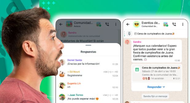 “Para acercar a las comunidades aún más, presentaremos una nueva función que permitirá organizar eventos en WhatsApp y lanzaremos respuestas organizadas a grupos de avisos. De este modo, los miembros podrán responder cuando los administradores envíen novedades importantes”, señala en un comunicado la app de mensajería instantánea.