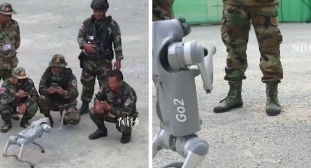 Los cuadrúpedos fueron desvelados recientemente por las fuerzas chinas durante los ejercicios militares 'Dragón dorado 2024', en los que participan estos días conjuntamente tropas chinas y camboyanas.