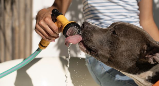 - Mantén a tu mascota hidratada todo el día. Coloca varios recipientes con agua fresca en diferentes puntos de la casa.