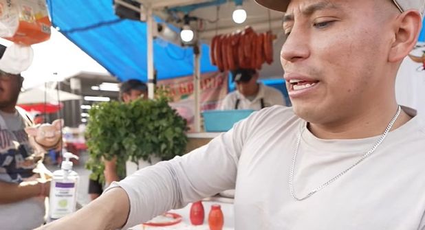 Así, el youtuber mexicano se acercó a un puesto de quesadillas y gorditas para comprar una orden y probar el sazón del lugar.