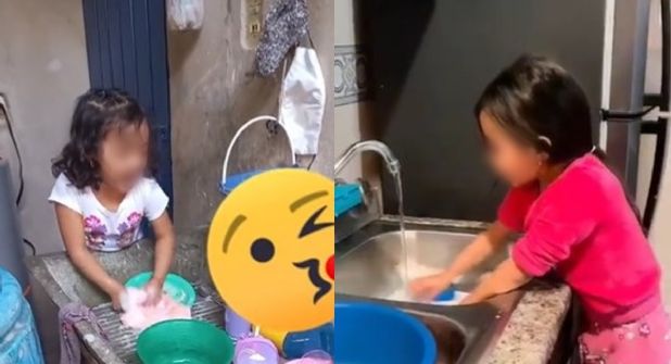 El usuario de TikTok identificado como "El zamorano" también compartió un video de cómo una niña pequeña, que de igual manera se encuentra lavando los trastes, canta "Qué Agonía".