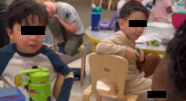 Desde los primeros instantes del video se pueden ver a varios pequeños sentados en mesas de prescolar, pero dos de ellos aparecen en primer plano nombrando los números en español del uno al diez.