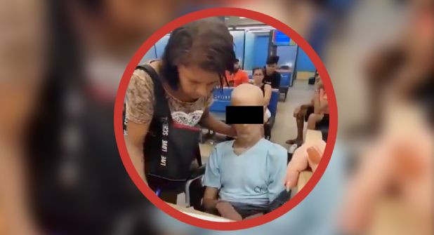 En redes sociales se ha hecho viral un video en el que se puede ver el momento en el que una mujer llevó en una silla de ruedas el cadáver de su tío a un banco para que pudiera cobrar un préstamo de 17 mil reales (tres mil 250 dólares).