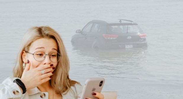 En las imágenes se puede apreciar a una camioneta color gris de la marca Hyundai varada en el mar, en otras, se ve a un elemento de Protección Civil a un lado para dar conocimiento de los hechos, y en otras simplemente el vehículo a la deriva.