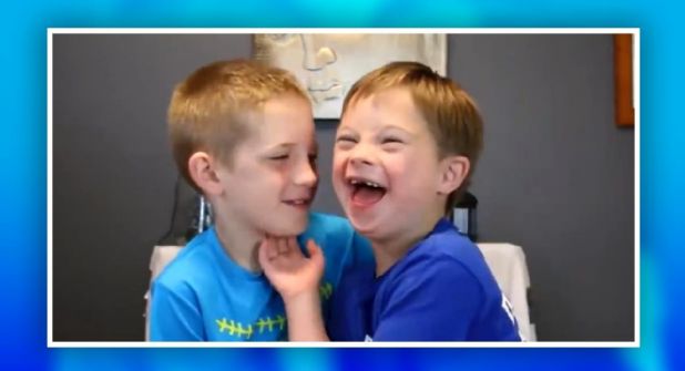 El chico voltea a la cámara y dice después de haber logrado su objetivo: "Él tiene la mejor risa del mundo", para recibir el tierno abrazo del hermano menor.