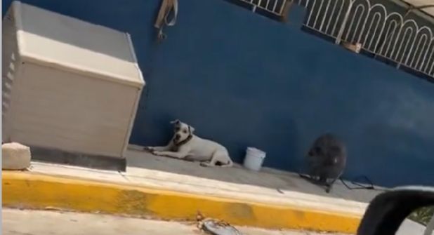 El video muestra al canino acostado sobre la acera, con un abanico de piso apuntando directamente hacia él. Esta ingeniosa solución para enfrentar las altas temperaturas parece haber sido ideada por el dueño del perro, quien además le tiene una casa de plástico y un recipiente con agua a su disposición.
