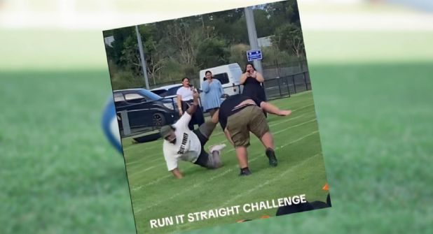 No es un secreto que el rugby se encuentra convertido en el deporte más conocido en países como Australia o Nueva Zelanda. La disciplina inspiró al Run It Straight, el cual consiste en dos personas que toman una distancia específica y corren a gran velocidad en busca de derribar a su contrincante en cuanto chocan, por si esto no fuera lo suficientemente peligroso, los participantes realizan este desafío sin protección alguna en la cabeza, cuello, espalda o cualquier parte del cuerpo.