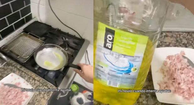 De acuerdo con lo que se relata, su novio se encargaba de preparar la cena, pero un tema cambió las cosas por completo en ese momento, ya que cuando revisaron los ingredientes, la joven descubrió que por equivocación, su pareja había colocado jabón para trastes en lugar de aceite en el sartén en donde estaban cocinando la comida.
