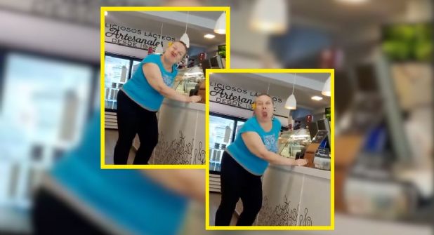 Después de recibir su helado, en lugar de calmarse, regresó a lanzarle otra frase con tono condescendiente al cliente que la grababa. Le soltó un comentario cargado de desprecio, como si quisiera dejar claro que se sentía por encima de todos, y se fue del lugar mirando con arrogancia.