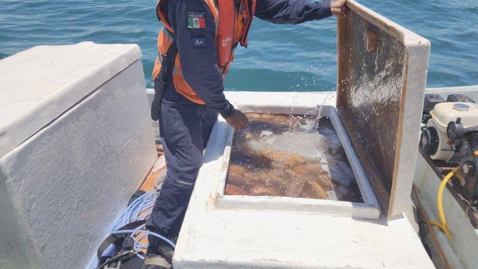 Por lo que durante un patrullaje marítimo, personal de la SSP, en coordinación con autoridades federales, ubicó un grupo de embarcaciones en altamar. Por indicaciones del personal de CONAPESCA, se procedió a inspeccionar una de ellas, en la que se localizó producto marino en veda.