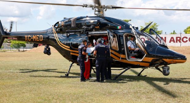 Fue estabilizada por personal médico y solicitaron el traslado aéreo a la ciudad capital. El helicóptero Bell 429 aterrizó en el helipuerto del hospital de Tekax y posteriormente en el campo de la Inalámbrica de Mérida.