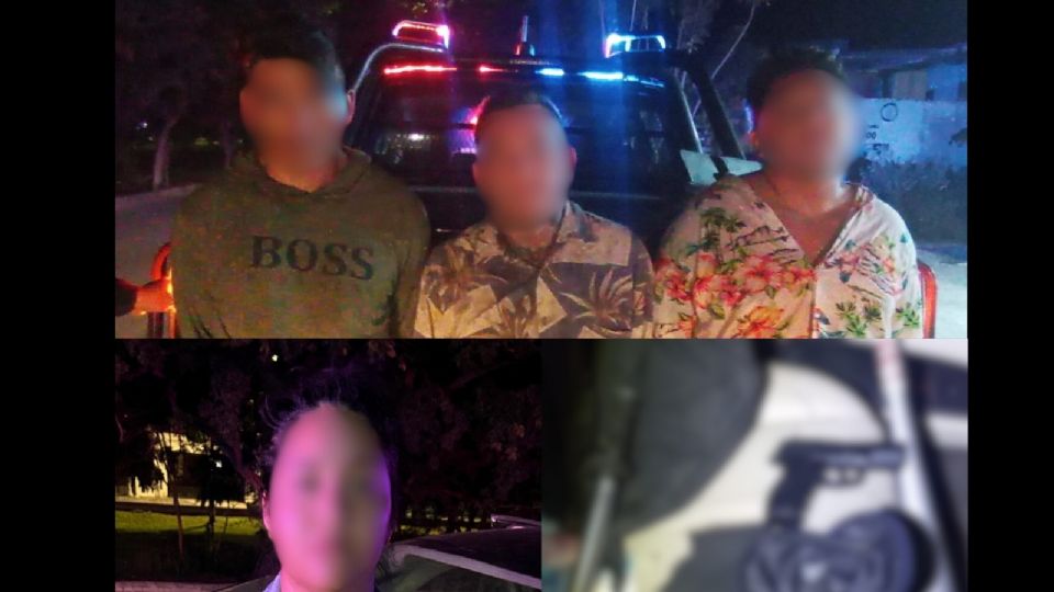 Cuatro personas que viajaban en un vehículo marca Linconl MKZ con placas del estado de Quintana Roo, y que portaban una réplica de arma de fuego, un tubo y un bate metálicos, fueron detenidos al poniente de Mérida por elementos de la Secretaría de Seguridad Pública (SSP).