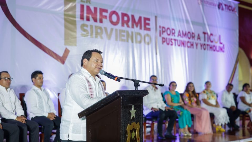 En sesión solemne del Cabildo de Ticul y en compañía de su esposa, la presidenta honoraria del DIF Yucatán, Wendy Méndez Naal, el Gobernador felicitó al alcalde y a su equipo por el esfuerzo, las acciones y los resultados obtenidos durante el primer año de gestión.