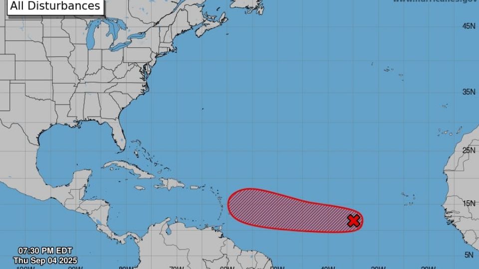 Señala que podría formarse una depresión o tormenta tropical entre la noche del viernes y la madrugada del sábado, en el Atlántico central. Posteriormente, tomaría rumbo oeste y, entre el jueves 11 y viernes 12 de septiembre, alcanzaría el Arco de las Antillas Menores para ingresar al mar Caribe, con trayectoria hacia Puerto Rico y la isla La Española (República Dominicana y Haití).